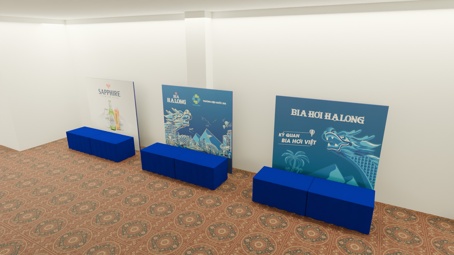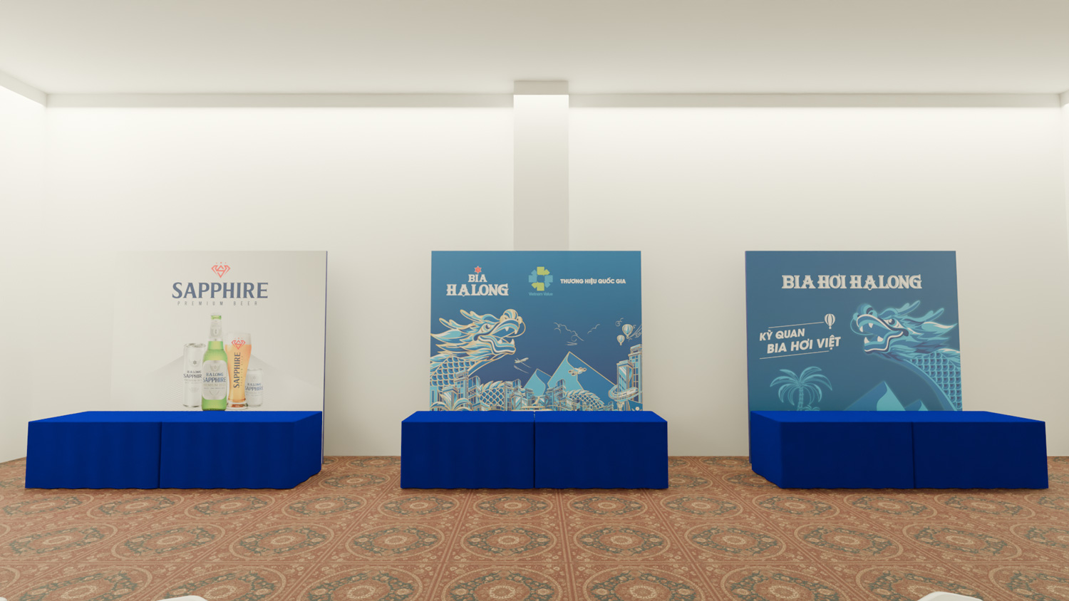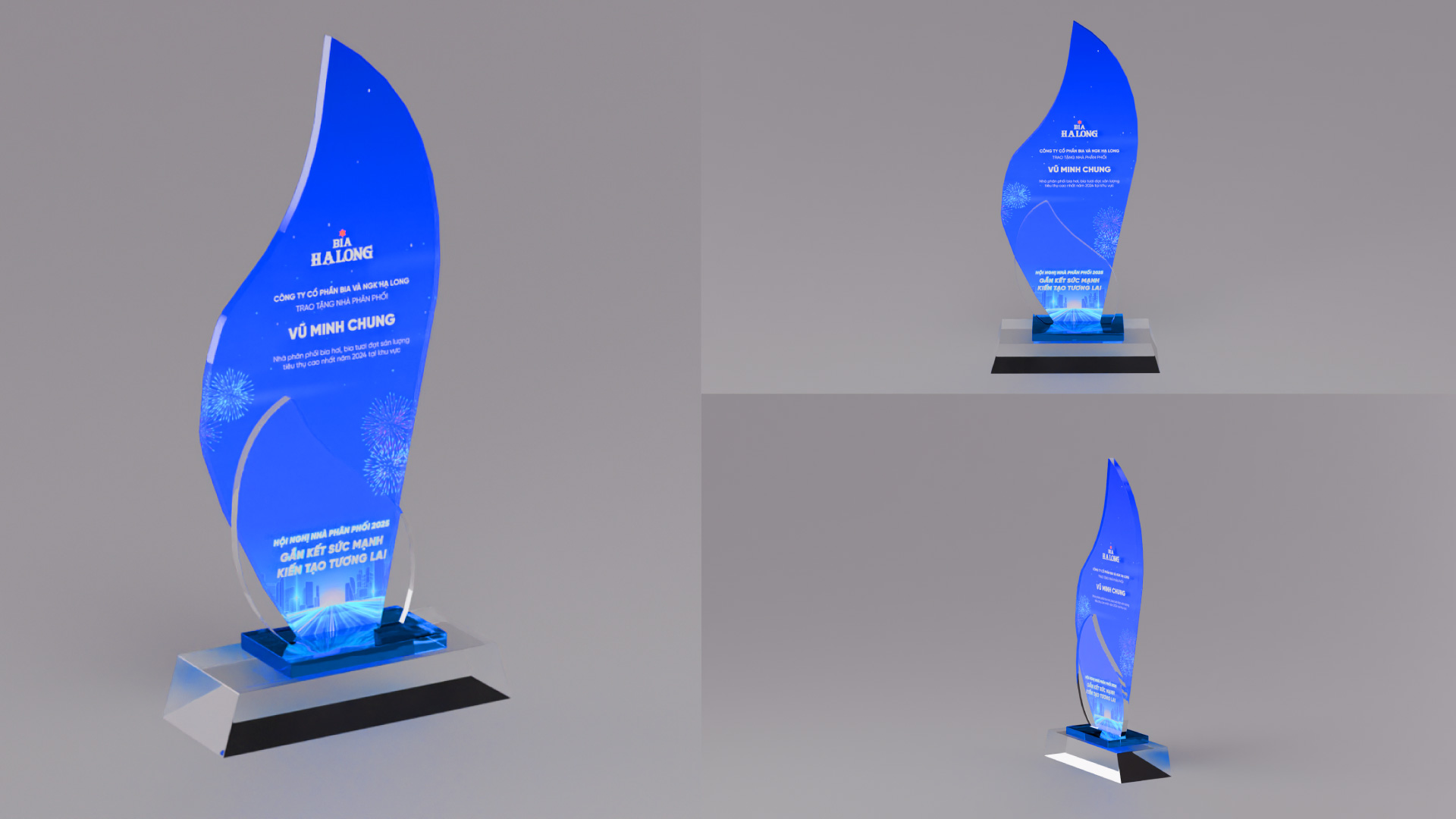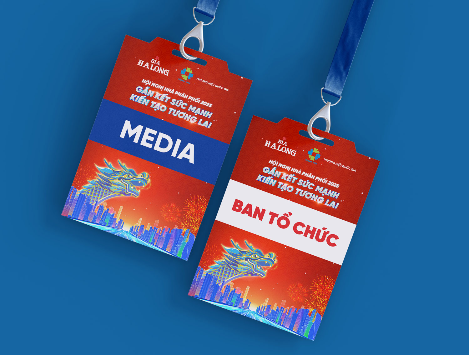 The dragon, a nod to Vietnamese heritage, intertwines with dynamic light trails, representing the connection between tradition and innovation. This bold composition, paired with the Halong Beer logo, enhances the event’s theme of success and sets an inspiring tone for the occasion.
