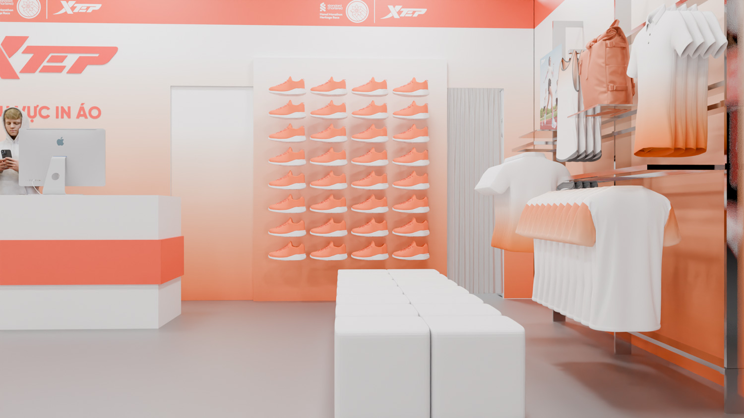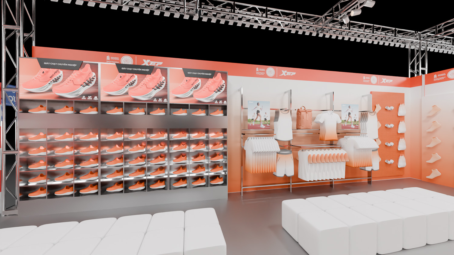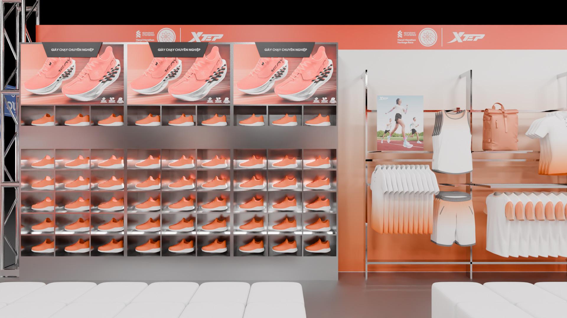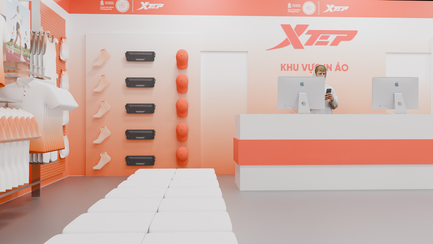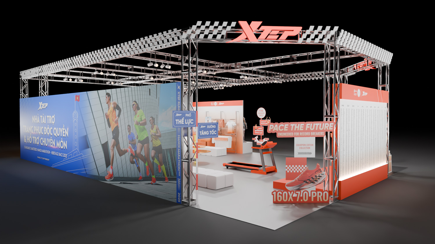 This project involved the 3D exhibition booth design for Xtep at the Standard Chartered Hanoi Heritage Marathon 2025 — one of Vietnam’s most prestigious international running events.