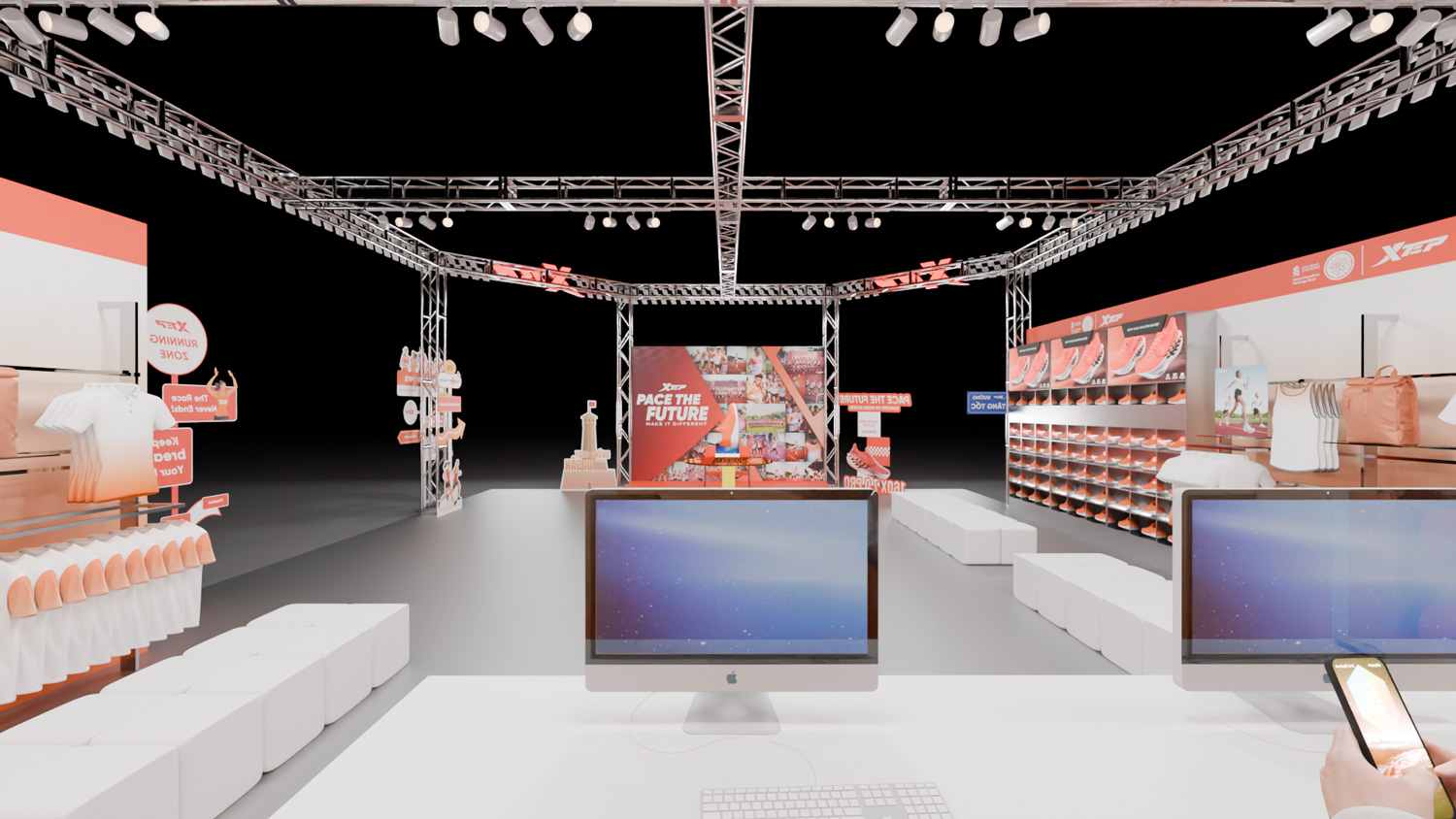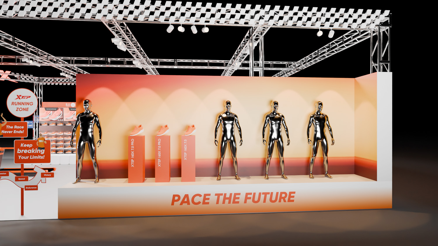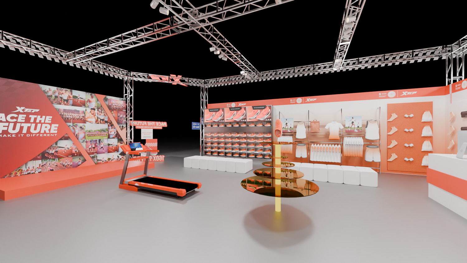 Inspired by the theme “Pace the Future,” the design emphasized speed, innovation, and athletic excellence. The open-structure truss system enhanced visibility from multiple directions, while strong brand colors and performance-focused visuals reinforced Xtep’s positioning as a leading sportswear brand engineered for record breakers.